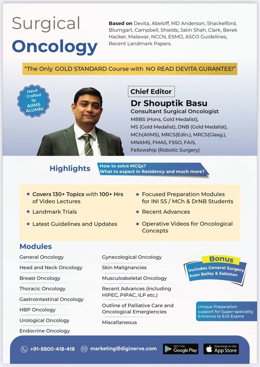 DigiNerve Surgical Oncology was developed by Dr. Shouptik Basu who is the Chief Editor of the programme and it was launched in December 2025 at ASICON 2025, Kolkata, as part of the DigiNerve Surgery SS teaching course, representing a major advancement in structured surgical education. This unique academic initiative is designed to serve as a comprehensive study resource for students preparing for entrance examinations such as NEET SS and INI SS, while also functioning as a definitive textbook for Surgical Oncology fellows and residents. The course has undergone critical academic review by internationally renowned experts, including Prof. Ronan O’Connell from the Royal College of Surgeons of Ireland and Prof. John C. Brennan, Vice President of the Royal College of Physicians and Surgeons of Glasgow, underscoring its global credibility and academic rigor. With participation from students across the globe, DigiNerve reflects Dr. Shouptik Basu’s deep commitment to excellence in surgical education. Its impact and innovation have also been internationally acknowledged through features in the leading U.S.-based cancer newsletter, OncoDaily.